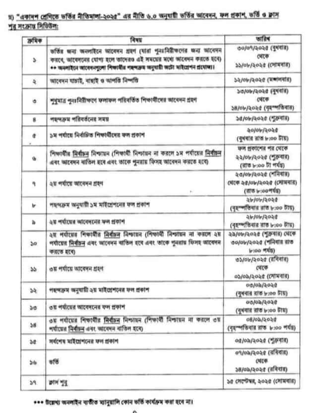 একাদশ শ্রেণীতে ভর্তি 2025-2026